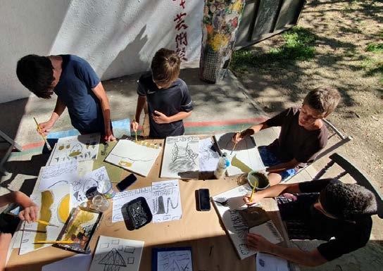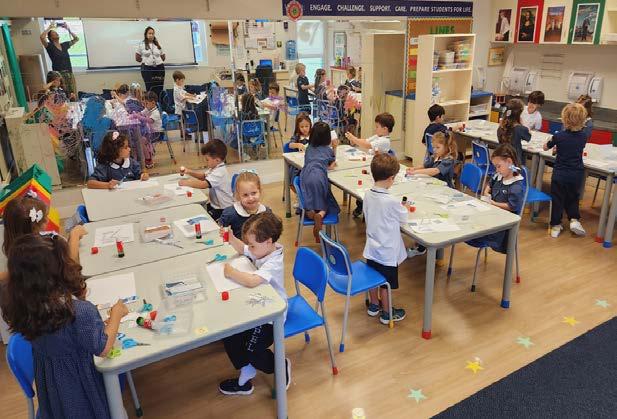 This school year was enriched with a variety of artwork productions, providing students with ample opportunities to showcase their knowledge, understanding, creativity, and innovative thinking. Through activities centered around the elements of art, they were able to express themselves in diverse and innovative ways. The curriculum included a comprehensive exploration of artists from around the world, allowing students to learn extensively and adopt a unique educational approach. The art department offered a multitude of opportunities for exploration, enabling students to delve into the artistic process and discover their voices. In honor of Family Day, students and their families came together to leave a lasting mark on the large wall of the playground. By stamping their hands using primary and secondary colors of paint, they created a vibrant mural as a testament to their love.