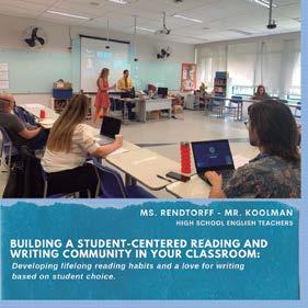em sua classe”, os professores Maxine Rendtorff e Francis Koolman compartilharam recursos, conhecimentos e experiências sobre como, em uma sala de aula, estruturar e implementar sistemas que fomentem o amor pela leitura e pela escrita de maneira significativa e autêntica, nutrindo uma comunidade de leitores e escreventes com o aluno como protagonista. De acordo com Ms. Rendtorff, os professores de outras escolas ficaram agradecidos, e todos puderam compartilhar boas práticas: “Eu me senti muito grata por fazer parte dessa experiência, enquanto prospero, aprendendo novos conceitos e práticas que estão sendo aplicados para que eu possa adaptá-los ao contexto da nossa comunidade Chapel. Também adoro aprender sobre as coisas incríveis que estão acontecendo nas salas de aula e nas escolas ao redor do mundo, a fim de que eu seja uma professora melhor e mais inspiradora para todos os meus alunos e comunidade”. Mr. Koolman concorda com a colega, acrescentando que o feedback da apresentação foi extremamente positivo, com o público fazendo um brainstorm: “Os professores presentes discutiram ideias para implementarem a mesma cultura de leitura em suas salas de aula. Foi uma maneira incrível de nos conectarmos com outros educadores e compartilhar ideias”.