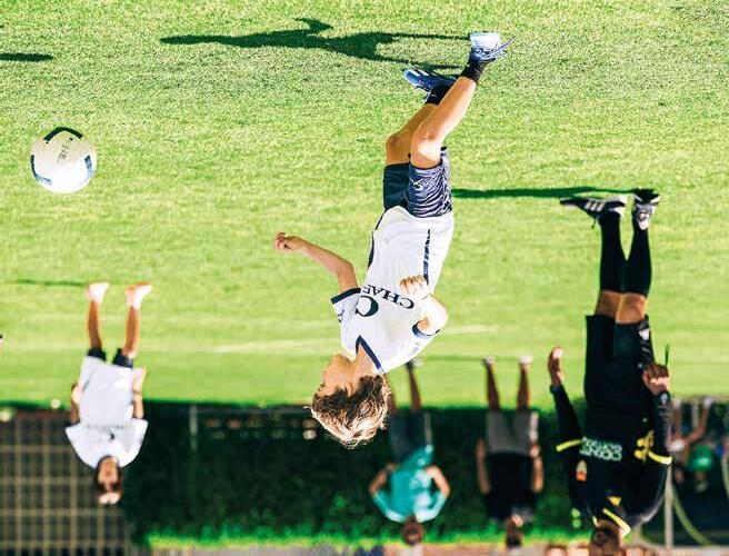 22 - Theo Lemos demonstrando sua paixão pelo futebol italiano e pelo time brasileiro que reúne parte da comunidade.