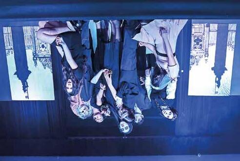 09 - Elenco completo em cena: Sophia Tsai (Ancestor), Marcel Moura (Tropeço), Lucas Inglesi (Vovó Addams), Lara Zwecker (Feioso), Marina Moura (Morticia Addams), Marta Castro (Gomez Addams), Laura Santiago (Wandinha), Bernardo Freitas (Lucas Beineke), Vibha Komala (Mal Beineke) e Mariana Avila (Alice Beineke).