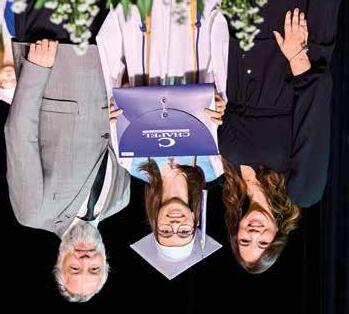 11 - Henry Joo recebeu o diploma da School Director e Elementary School Principal, Ms. Juliana Menezes, e do High School Principal, Mr. Sean Quinn.