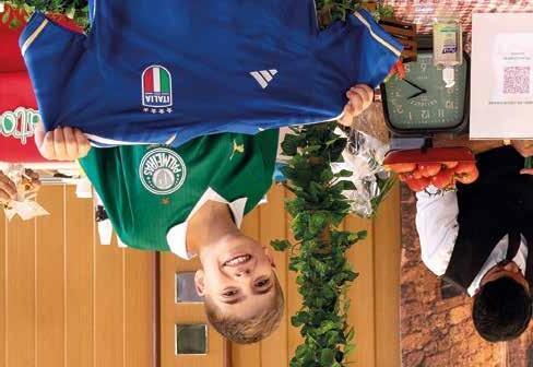 22 - Theo Lemos exhibits his passion for Italian soccer and for the Brazilian team that brings the community together.