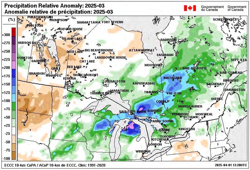 Precipitationwasabovenormalformost oftheprovince.Itwasdrierthannormalinparts ofboththeFarNorthandthenorthwest(nearthe Manitoba border). Major precipitating systems