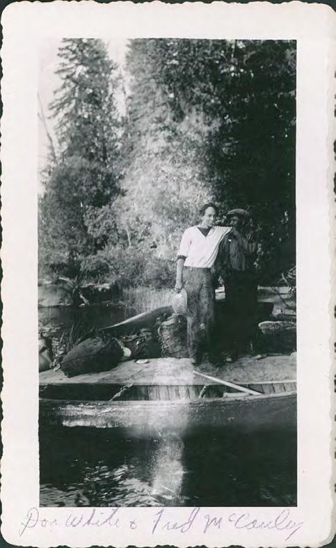 By the end of the first day, they had run rapidsandtravelledabout60milesmakingcamp atPeterbellontheCanadianNationalRailway. They enjoyed a "well earned supper of fish, bannock, jam and tea" and then "crawled intotheireiderdownsandwiththeskyforaroof, sleptasonlythoseonthetrailcansleep,seldom beingtroubledbythemosquitoesandblackflies. Thenextdayaftershootingrapidscalling one a "thrilling experience" Donald White remarked, "It gives you a tingling feeling, shooting rapids like these." (Perhaps someone canaskDonaldifherecallstheremark).