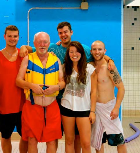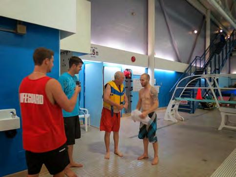 I arrived at the pool a bit earlier than usual and Dane was just completing his shift, and suggested that I do some warmup laps. WhenIlookedoveratthelifeguardroom,itwas morecrowdedthanusual,anditstruckmethat theropeswingteamwerealloffdutyandwere showinguptohelpwithmyropeswingattempt. Trust me folks. These lifeguards are super, and have made me feel safe and secure sincethefirstdayIstartedgoingtothepoolafter returning from a trip to Florida where I swam everyday.