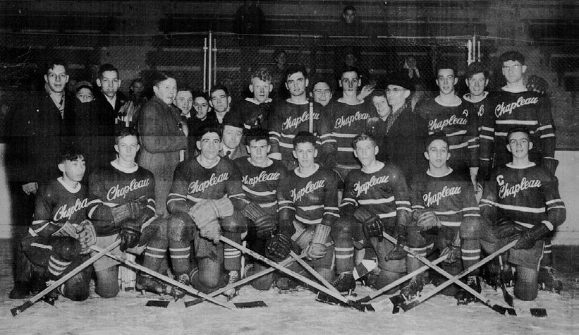 ChapleauJuniorTeam1949--BackrowarefromleftOrvilleRobinson,Doug Swanson,LorneRiley,GregLucas,TeeChambers,FredGoheen,KeithStrapp, ToddyCollinson,Ernest'Sonny'Bignucolo,D.O.Payette(manager),PatSerre, Ross Hamlin, George Payette. Front from left,Yen Hong, Bob Evans, Reggie Sonego, Ross Thornton (coach), Tom Jardine,Angelo Mione, Johnny Morin, MikeMione,ClarenceFiaschetti