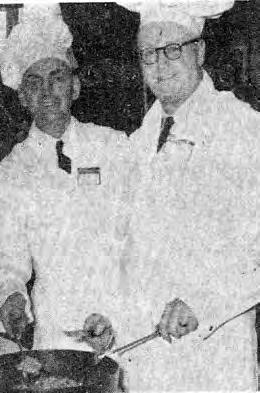 ReeveB.W.'Bubs'ZufeltandCouncillor A.J. 'Art Grout, both charter members who servedasclubpresidentsin1956-57and1954-55 respectively donned chefs' attire to help serve "the sumptuous banquet prepared by camp cooks."