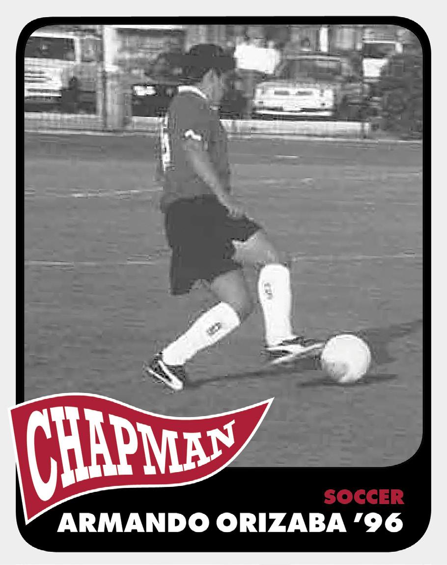 Favorite Memory: “My favorite memory at Chapman was beating Redlands on their home turf for the firstever SCIAC football championship in school history. Celebrating on the 50-yard line, after dumping the Gatorade cooler over Coach Owens, will never be erased from my mind.”