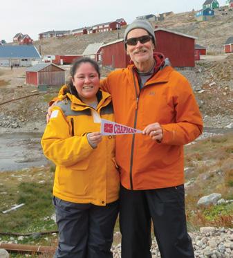 Board of Directors and carries a Chapman pennant when she travels in case she meets other Chapman alumni. 6