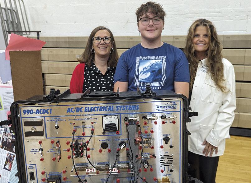 Bednar and navigators (l to r) Tracey Britt and Kim Butala showcasing the Amatrol® AC/DC electrical learning system.