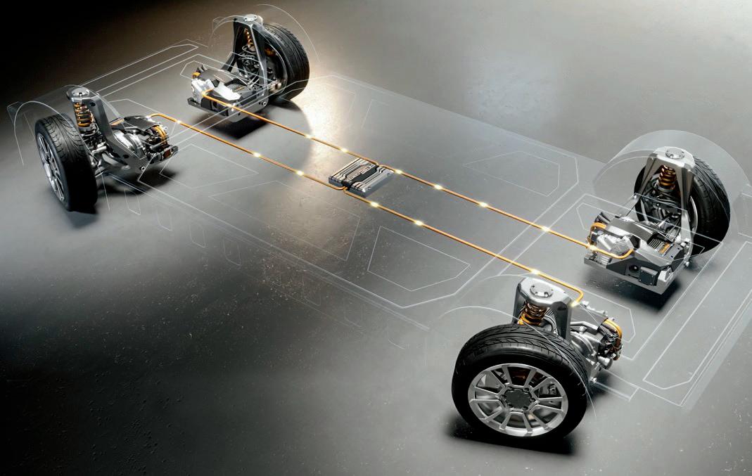 Traction control and torque vectoring improve vehicle handling, acceleration and braking, o ering faster wheel response compared to conventional wheel and suspension setups, according to the company.