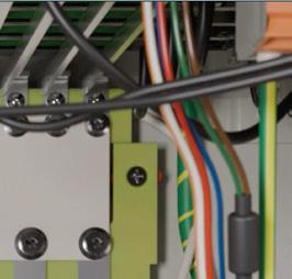 A Nick Stone: Yes. Our modem, the display, the buttons, the e-stop, the heat exchangers—all of those are coming from a central power supply that’s built in. ere’s no need for a separate DIN rail power supply or a whole bunch of other wiring. Conversion of any type of AC voltage is a core competency that Lite-On has, and we integrated that into our overall design. We don’t have external wires come and go to the power supply, then come out and feed all these loads—we’re doing it all in an integrated, clean solution.
