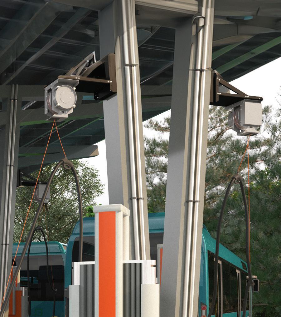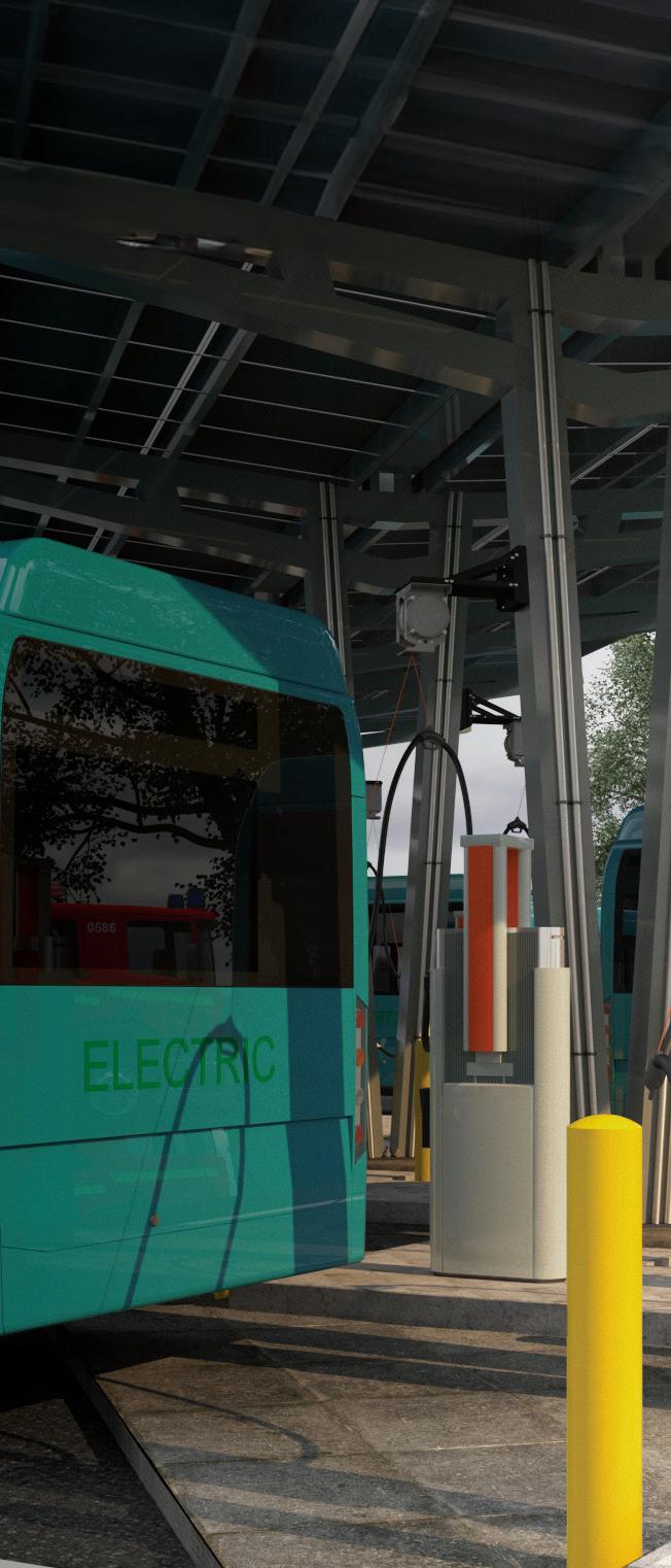 you need to build out, including getting an additional service line from the utility, and upgrading the switchgear. If you’re not a practitioner in the space, you don’t think about these things. How do I plan what the depot looks like and where the vehicles come in, because it’s not the same as internal combustion—you need to have spacing and bollards and striping with a certain amount of space between the buses to get the wires in. ere are a number of examples where vehicles precede the infrastructure, and construction does take time—it’s not something you can do overnight.