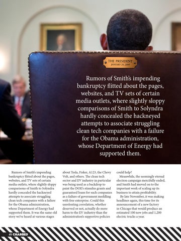 Rumors of Smith’s impending bankruptcy flitted about the pages, websites, and TV sets of certain media outlets, where slightly sloppy comparisons of Smith to Solyndra hardly concealed the hackneyed attempts to associate struggling clean tech companies with a failure for the Obama administration, whose Department of Energy had supported them. Rumors of Smith’s impending bankruptcy flitted about the pages, websites, and TV sets of certain media outlets, where slightly sloppy comparisons of Smith to Solyndra hardly concealed the hackneyed attempts to associate struggling clean tech companies with a failure for the Obama administration, whose Department of Energy had supported them. It was the same old story we’ve heard at various stages