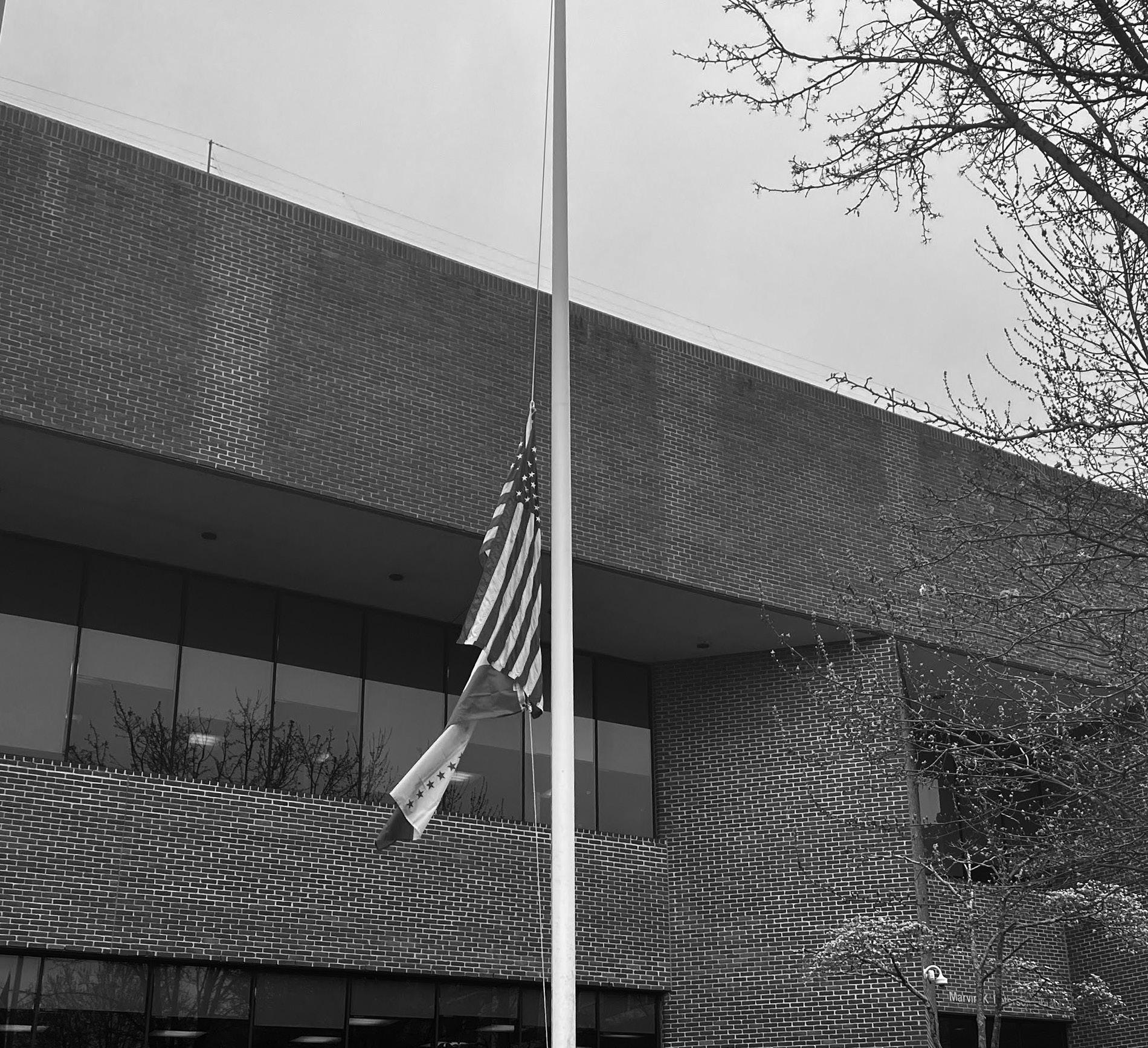 I was walking to my workplace when I saw the flag at half-mast which I assumed was for mourning the loss of the five people killed in the Louisville bank shooting and the one person killed in the Jefferson Community and Technical College shooting. Or maybe it was mourning the loss of the three nineyear-old students and three staff workers in the Nashville Covenant School shooting? Even as I am writing this, there was a shooting which injured four people in Paterson, N.J. The flag seems to perpetually mourn the loss of innocent lives. It leads me to wonder, though; when was the last time the flag wasn’t at half-mast?