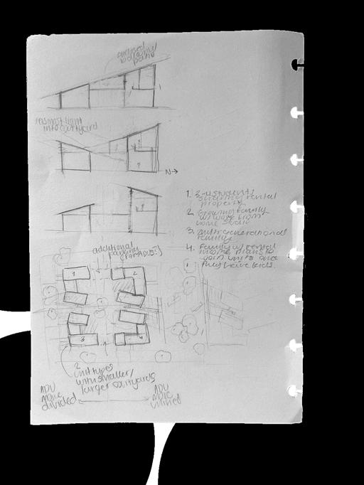 I chose the northernmost block of the Rene masterplan as the site for this project as it was previously filled with single family homes. The population of Wayne is quickly growing, especially in the young adult and senior demographics, so adding density to this block will be important to accommodate this growth. By adding ADUs to the houses on this site and arranging them with shared yards to maximize space, I was able to nearly double the number of units.