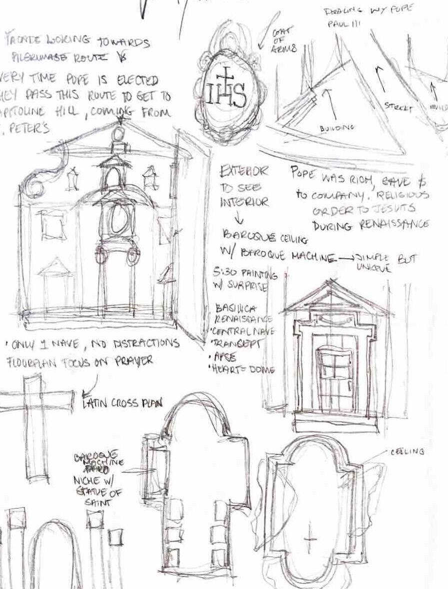 FALL 2021 These sketches were completed during my Visual Journaling course abroad. They provide a closer look into the thought process and strategies I use for sketching large scale structures and conceptual ideas. BASILICA SKETCH SANTA CROCE STUDY SKETCH EX CARTIERA APPIA ANTICA CONCEPT SKETCH QUATTRO FONTANE SKETCH Sketches and Other Works Rome, Italy - Various LocationsCLOISTER SKETCH GOTHIC WINDOW SKETCH WORKSOTHERANDSKETCHES