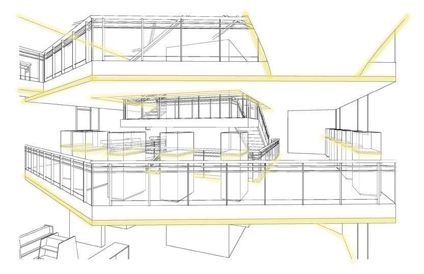 10 legend existingroof truss supportsystemstructurallightingworkshopresearchLevelchangescustomframeworkfurniturepatternpathways10existingwalls miniplatekwalkover letrohstrip leaf lamp green furniture concept buzzispacebuzzigrid FLAKE NORGAARDTABLE HIGHTOWERPRISM HAPPY ROGERBARSTOOLPERSSON STELLACHRISTINEFLOWERSCHWARZER BUSK AND HERTZOG LONGITUDINAL SECTION AXONOMETRIC GROUND REFLECTEDMEZZANINEFLOORPLANFLOORPLANCEILINGPLAN