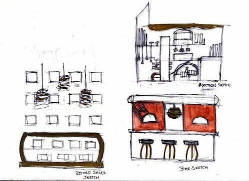 DISPLAY SKETCHES LIGHT STUDIES SALES FLOOR PERSPECTIVE CONCEPTBlackSKETCHES&Brass Record Bar New