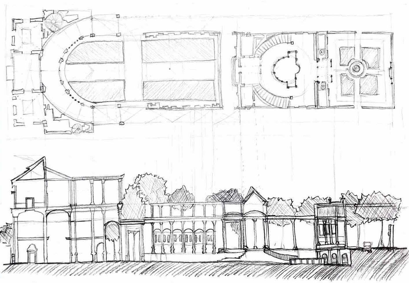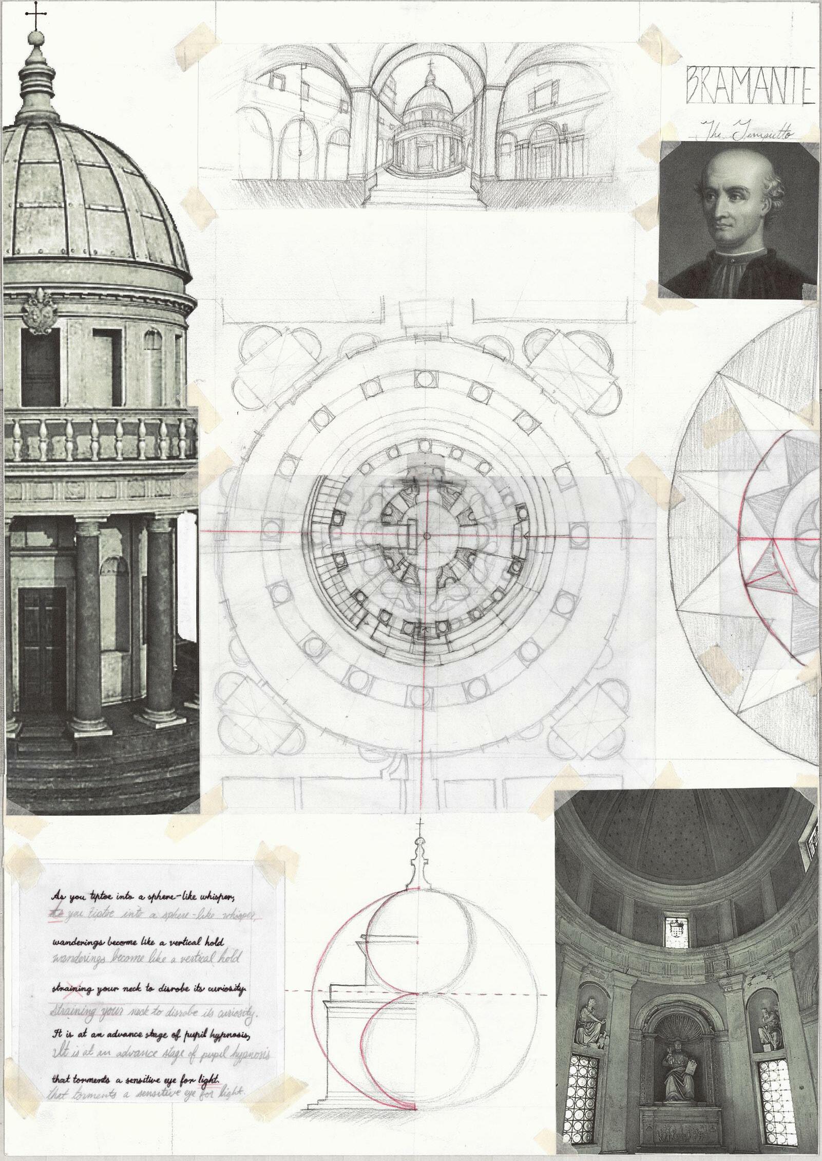 BRAMANTE PHOTO ESSAY SANT IGNAZIO SKETCH ECSTACY STUDY SKETCH VILLA GUILIA FLOORPLAN AND SECTION VILLA GUILIA PERSPECTIVE