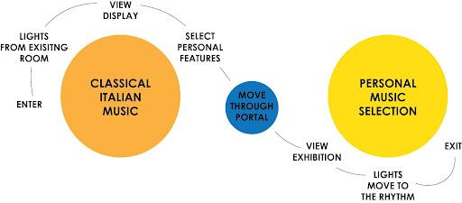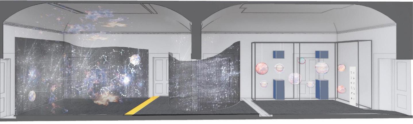 Transcendere is a personalized experience for each occupant. Each walkthrough is based on the choices made in the educational and interactive area located in Fresco I. After the educational portion of the exhibit is completed, patrons move through the “zodiac portal” into their customized immersive experience. Constellations are projected onto the ceiling and Fresco II is filled with classic music produced by Italian musicians. Occupants are then encouraged to stargaze for the full composition before exiting the exhibition.