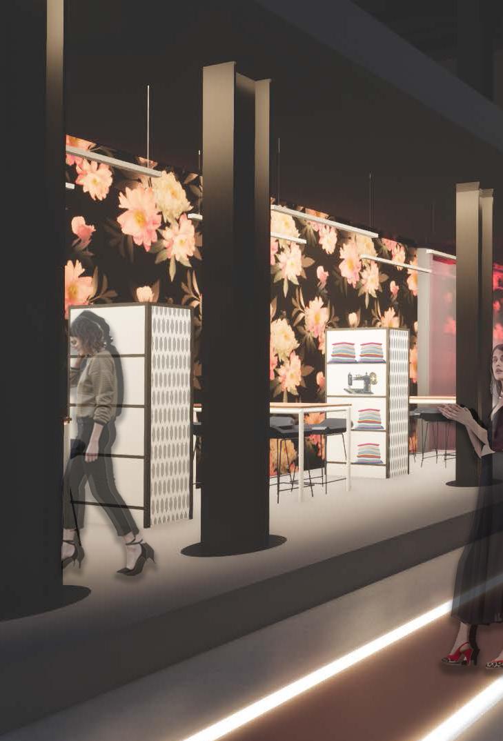 FALL P.L.A.I.D’s2021concept creates elegant yet vivacious environments through the interpretations of patterns. The design uses layering as a design strategy which allows the solids to create balanced and proportionally sound interiors. The spaces reflect the playful personality of the fashion designer and the inclusivity of their fashion line. SITE MOODCONCEPTANALYSISSKETCHESBOARD SPACE PLANNING WORKSHOP PERSPECTIVE RUNWAY BOUTIQUEPERSPECTIVEPERSPECTIVE PRODUCTION PERSPECTIVE P.L.A.I.D Eco-Fashion Center Rome, Italy - Ex Cartiera Appia Antica SoulDazeforCENTERECO-FASHIONP.L.A.I.D