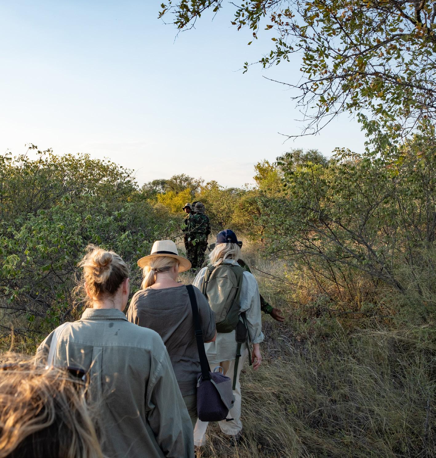 most deadly snakes in the region – as well as thorny thickets. We walk in single file, keeping an eye out for each other as well as the Big Five, all of which are resident in this area.