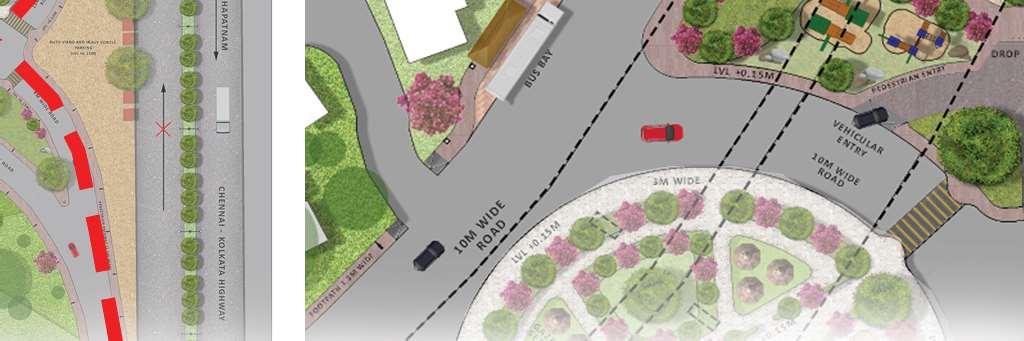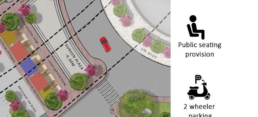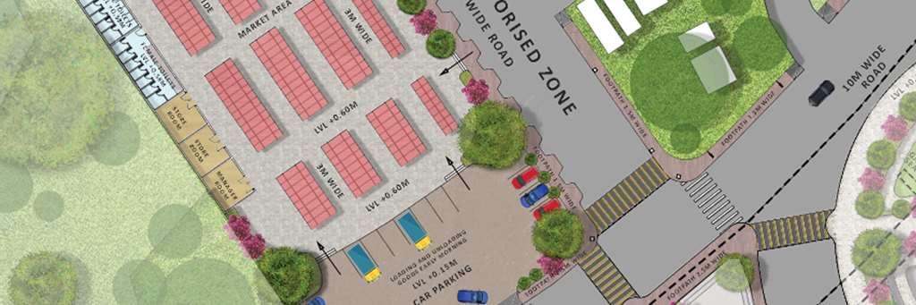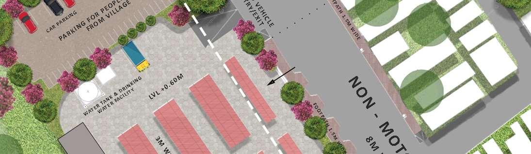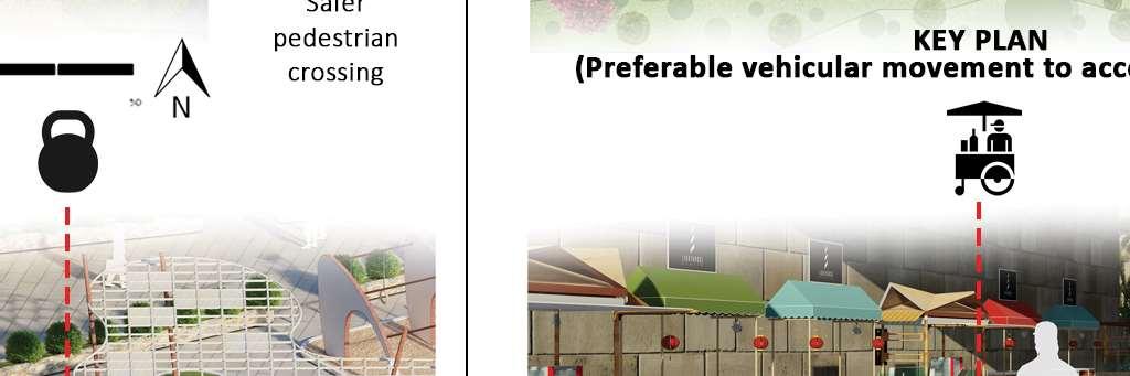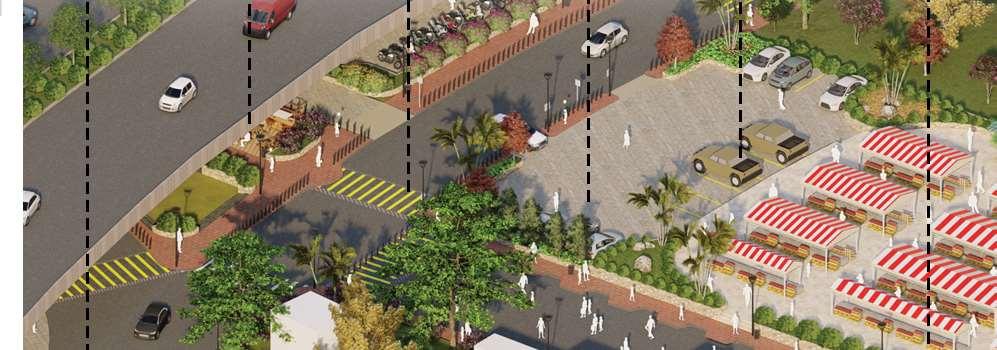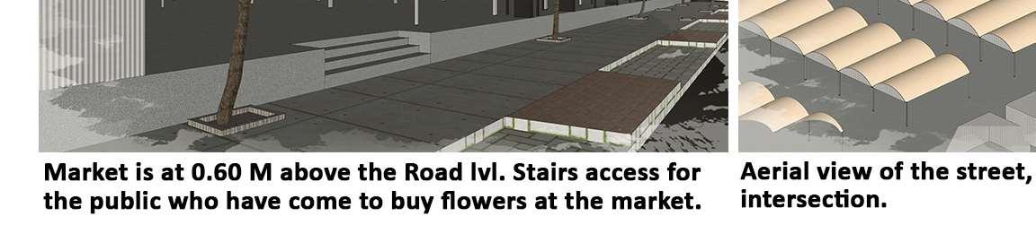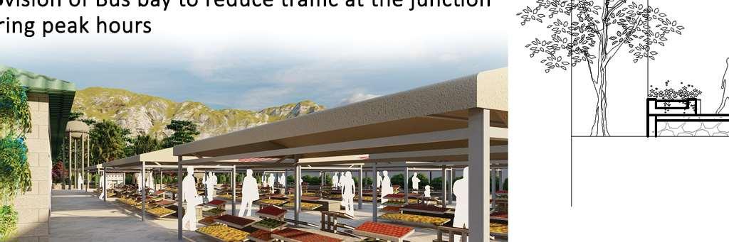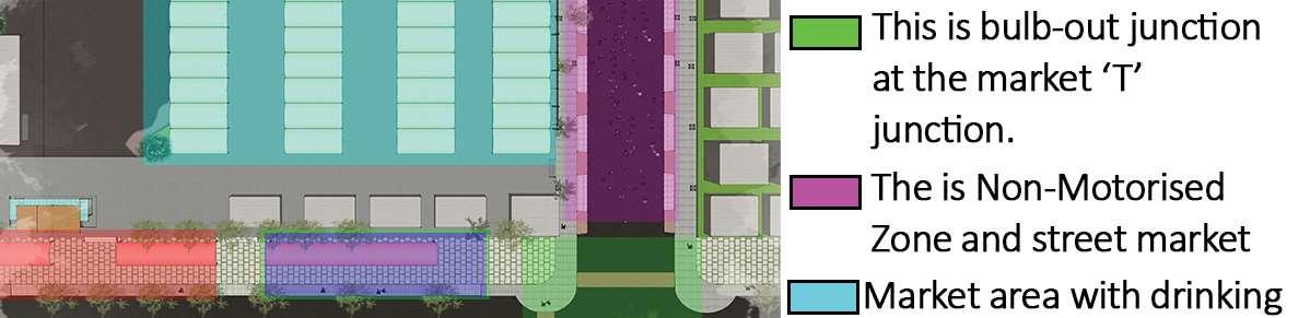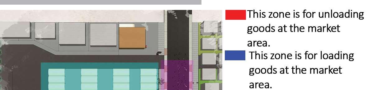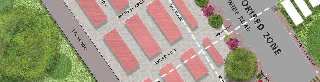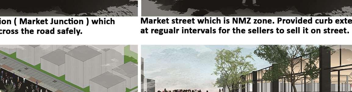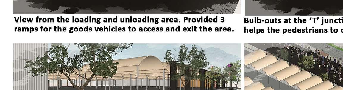 Designing the market area to ensure safer pedestrian crossings and good connectivity with other pockets beneath the flyover. Provided zones for loading, unloading, selling and preparation.