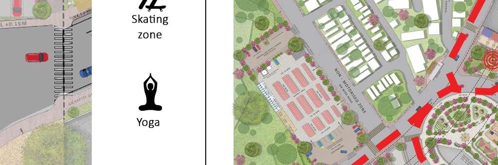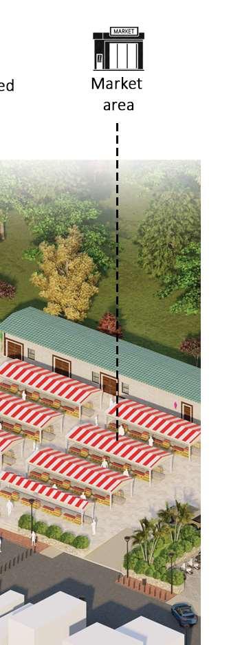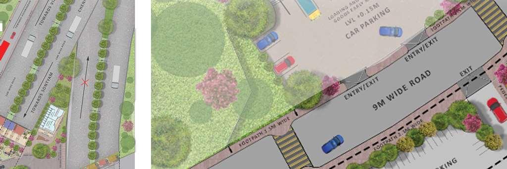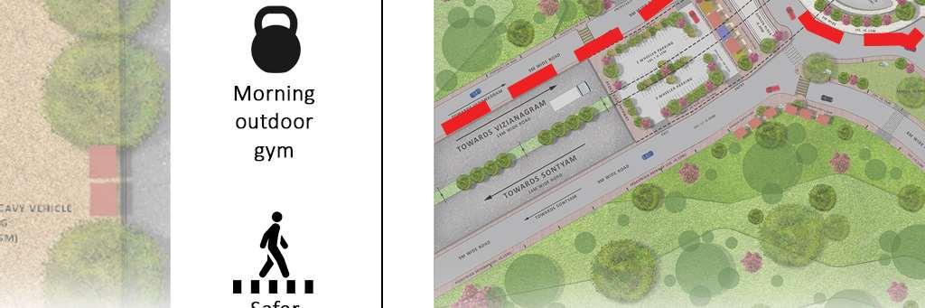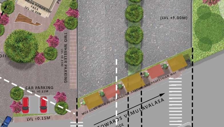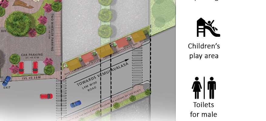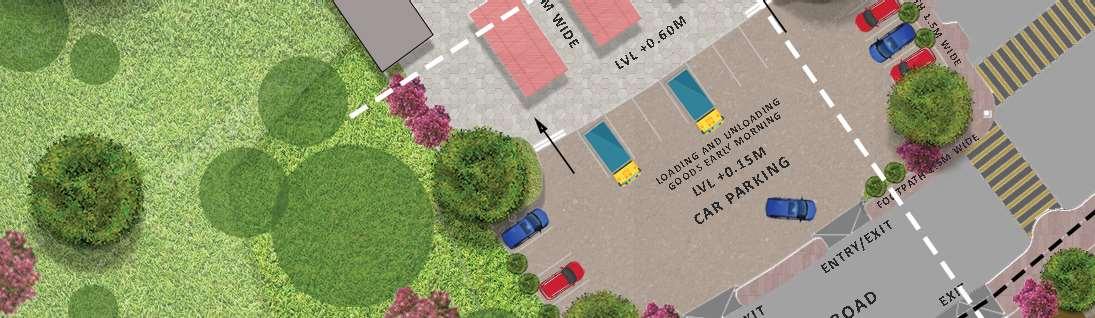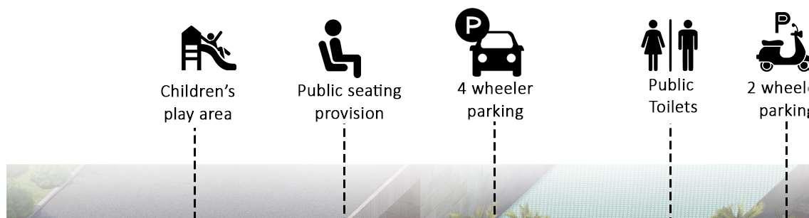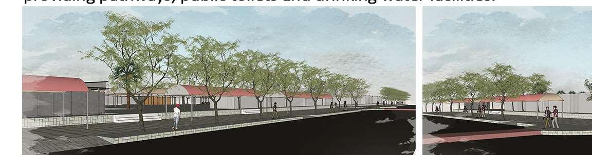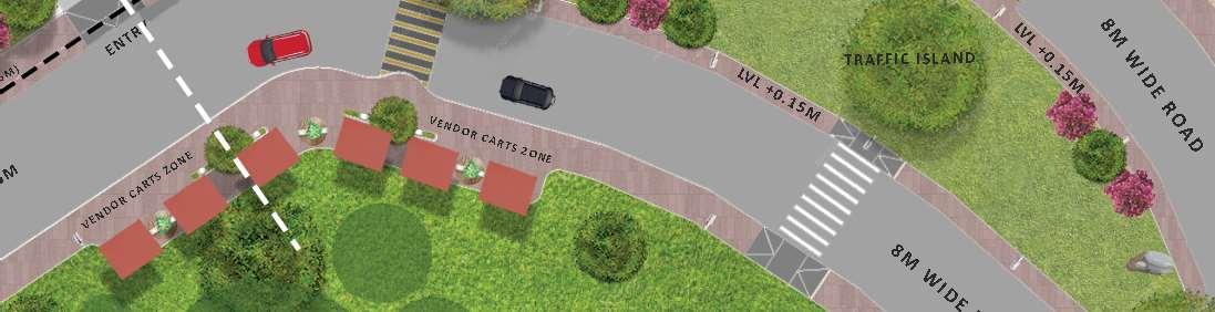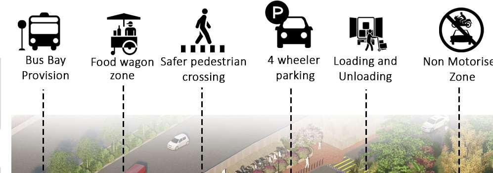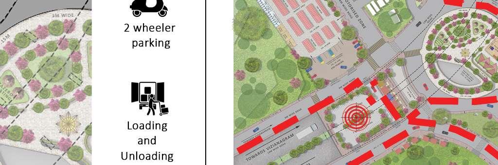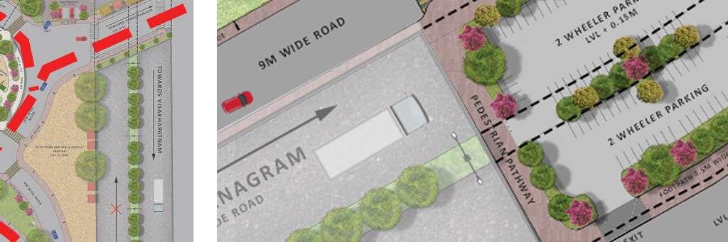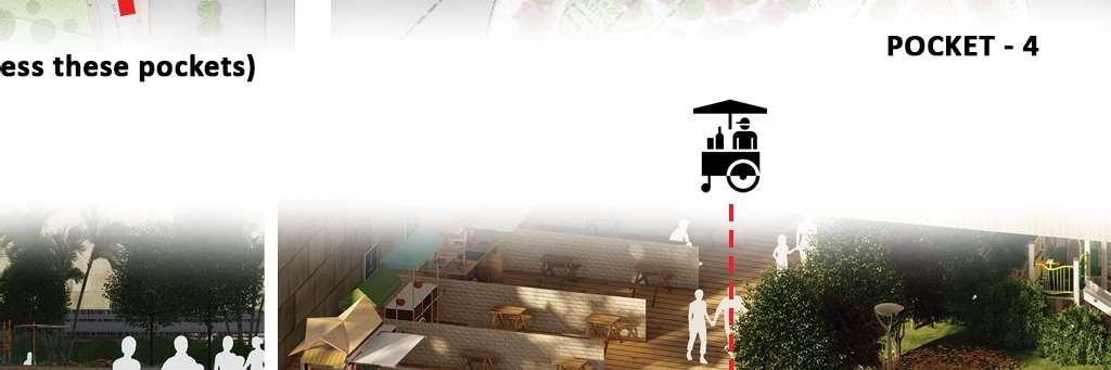 Designing the market area to ensure safer pedestrian crossings and good connectivity with other pockets beneath the flyover. Provided zones for loading, unloading, selling and preparation.