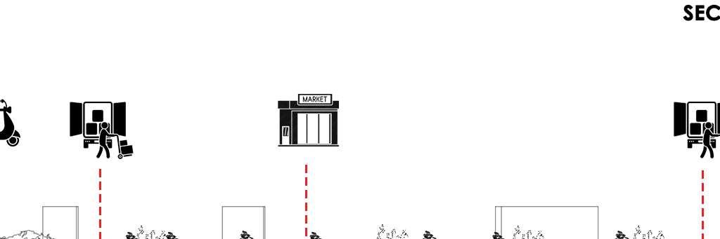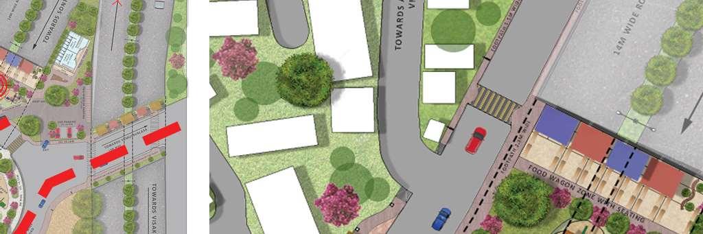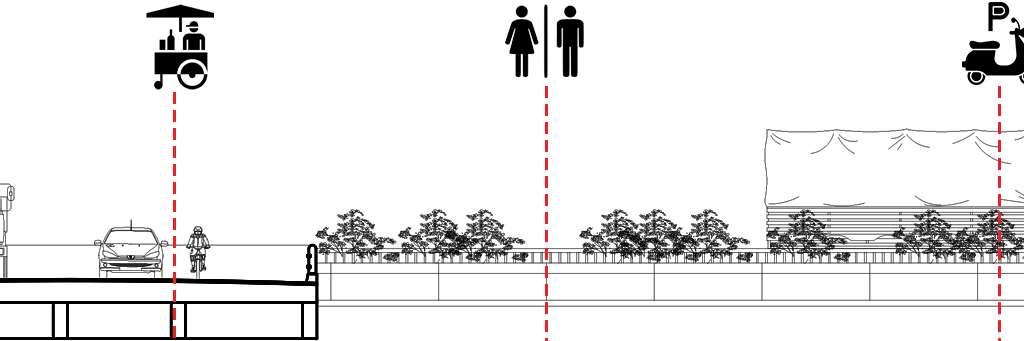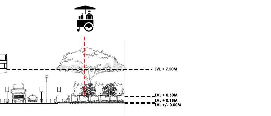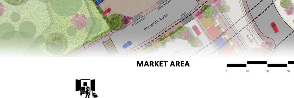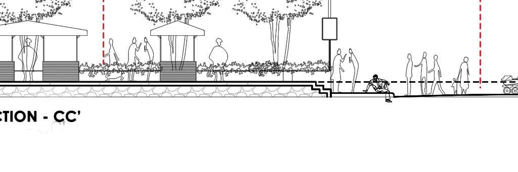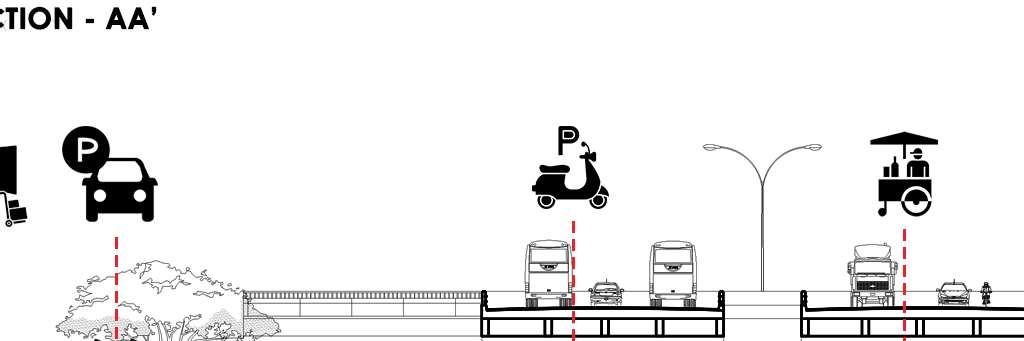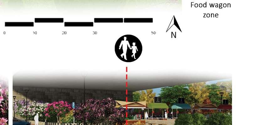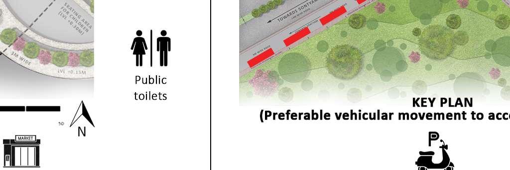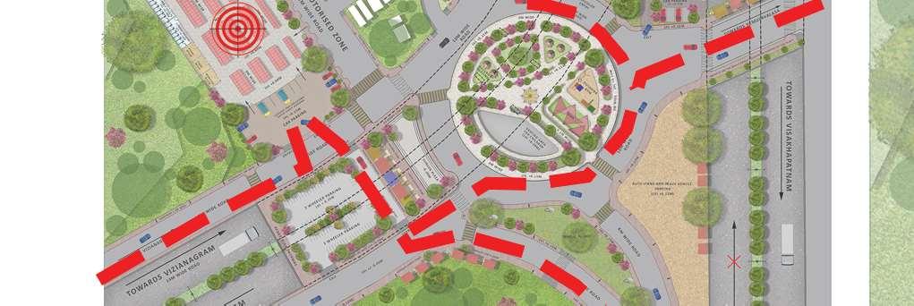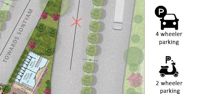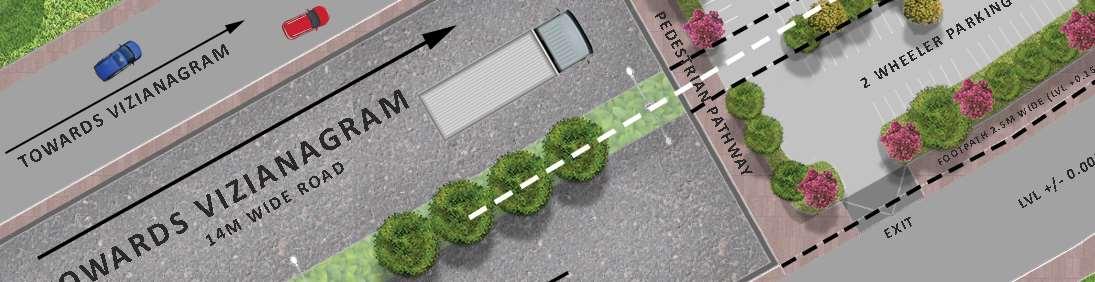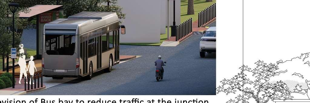 Designing the market area to ensure safer pedestrian crossings and good connectivity with other pockets beneath the flyover. Provided zones for loading, unloading, selling and preparation.