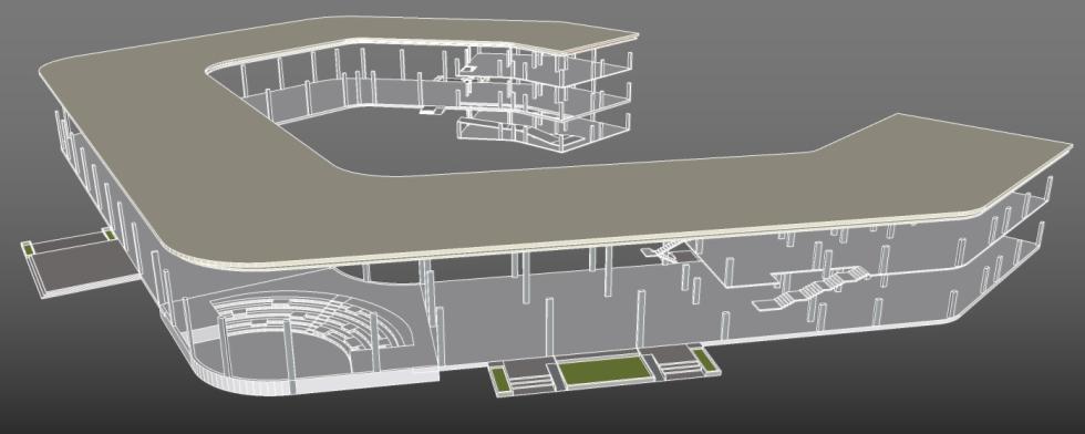 Base Form Generation: The design starts with a simple cuboidal mass to accommodate the large-span requirements of the terminal.