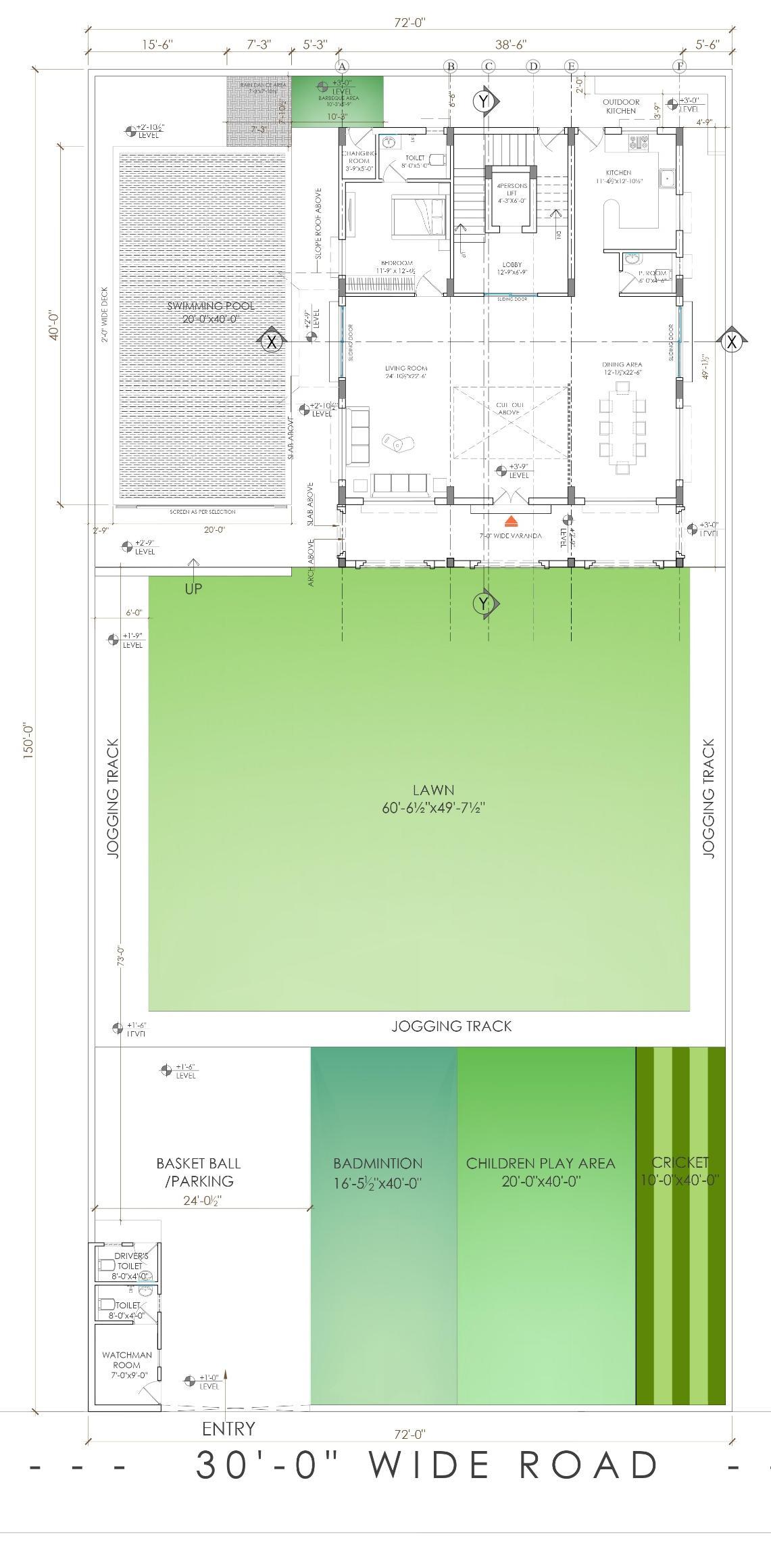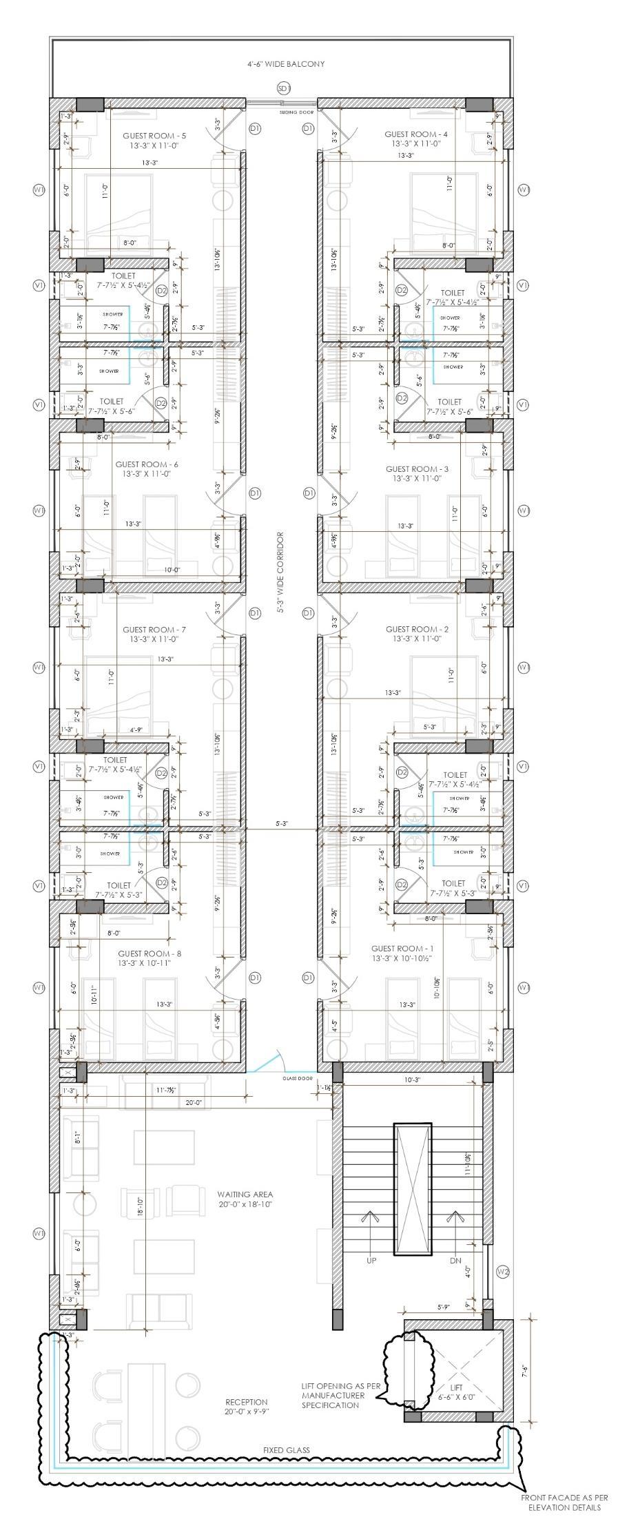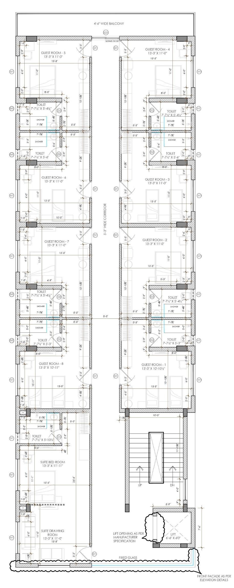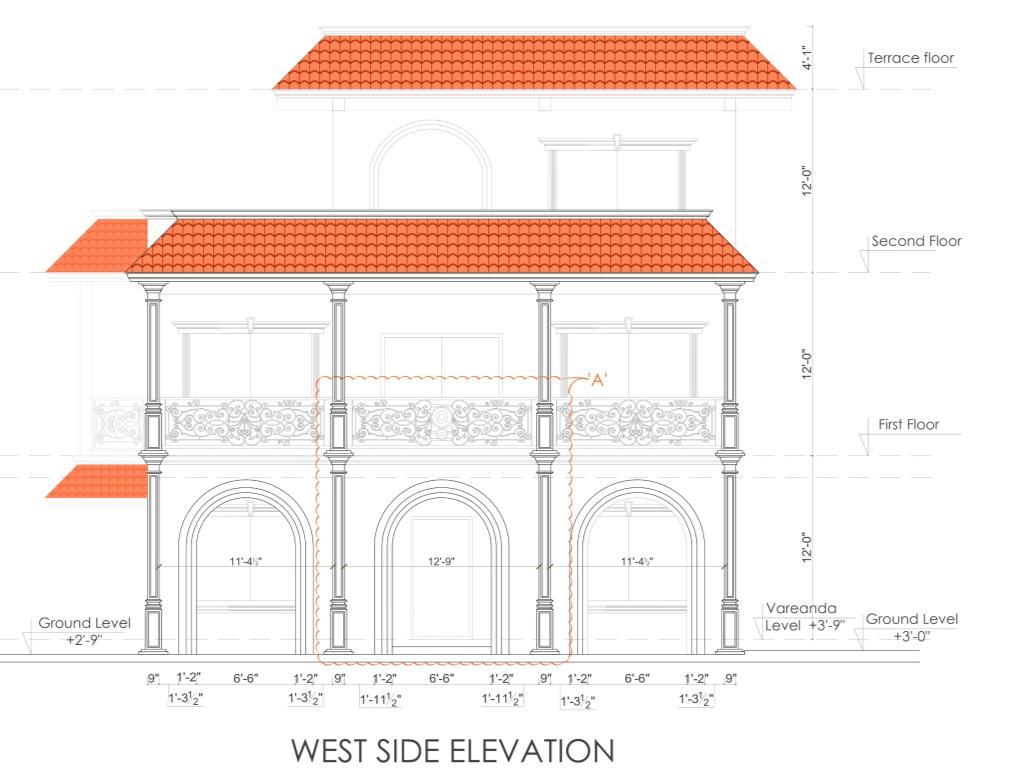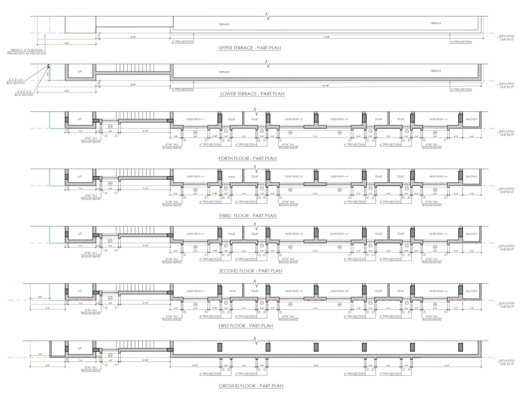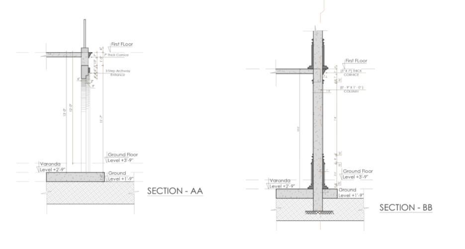 • I prepared the front elevation, detailed elevation drawings, and part plans for elevation detailing. My work focused on developing accurate façade treatments, material specifications, and construction-level details to guide site execution.