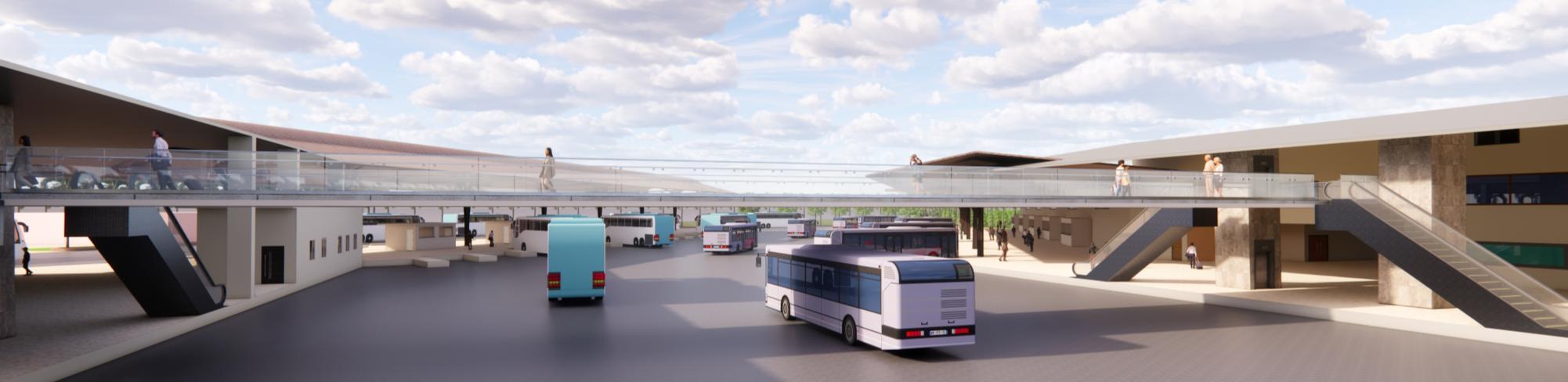 Connection & Expansion:A pedestrian bridge connects the two blocks for smooth movement, while additional wings are added to accommodate the bus bays and streamline operational flow.