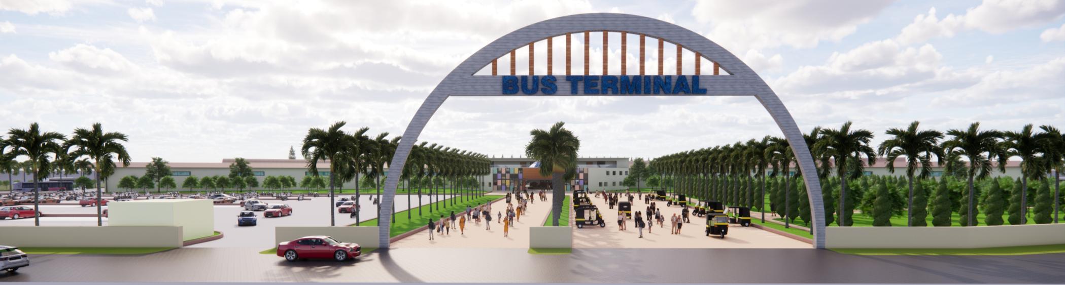 A bus terminal is a facility where city, intercity, and interstate buses halt for passenger pick-up and drop-off. The design includes efficient circulation, safety, accessibility, and comfort. The terminal integrates intercity and interstate bus services, an admin block, commercial spaces with restaurants, and accommodates 80+ bus bays, creating a functional and user-friendly public transport hub.
