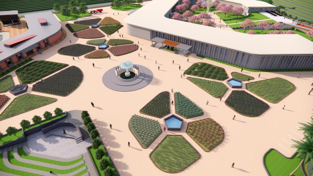 The Flower Garden at the entrance creates a vibrant visual landmark, welcoming visitors with colourful, geometric plantings that enhance the estate's identity.