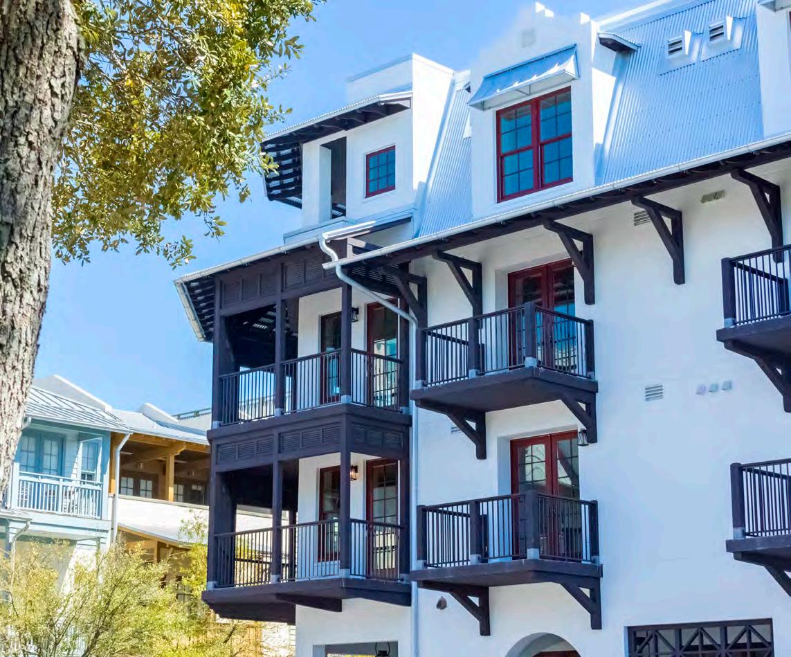 The Georgetown is artfully blended into Rosemary Beach, the intricately-planned community designed by DPZ CoDesign. The 107-acre site along the Gulf of Mexico combines New Urbanism principles, emphasizing walkability and design at the human scale. Rosemary Beach is known for its brick-lined sidewalks, expansive verdant spaces, inspired architecture, boardwalks, cobblestone streets, and walkable town center.