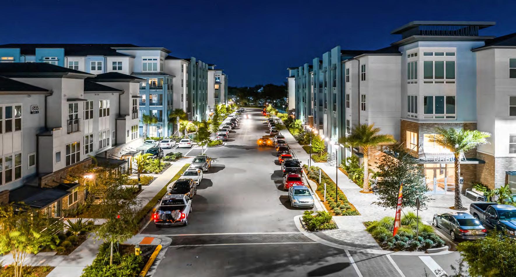 Beyond the typical high-end apartment conveniences, Berkshire Winter Park attracts a community of creative, urbane professionals with an abundance of modern concepts. Amenities include a podcasting studio, creative work room, pet spa/lounge, and outdoor recreational areas, while numerous old growth live oak trees were preserved in the development of various courtyards and gathering spaces. The project even takes advantage of the adjoining elevated highway infrastructure to provide a wonderful, surprisingly quiet garden muse. Berkshire is a successful anchor in the community and contributes to the critical mass that sustainably supports the nearby medical complex, local businesses, and SunRail mass transit system.