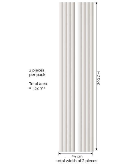 Total pack size: 300cm Height x 44cm Width = 1.32sq/m.