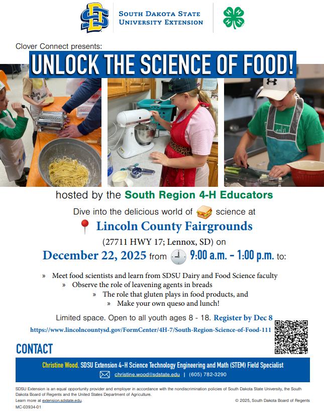 4-H Brookings *Class limited to the first 30 registrants REGISTRATION IS ON AFIRST COME FIRST SERVE BASIS There will be a waiting list if needed Forms and payment due Dec. 3, 2025.