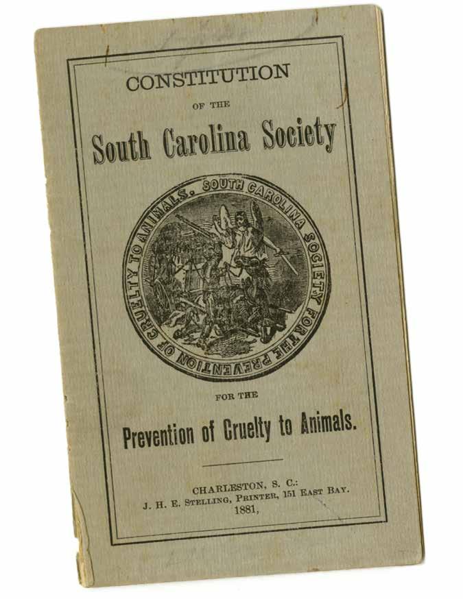 In the pages preceding this letter, you saw our callouts to “Leadership,” “Tradition,” and “Excellence.” Since 2012, these words have anchored our logo as a symbolic foundation for us to follow as an organization. In the first Constitution for the South Carolina Society for the Prevention of Cruelty to Animals these same themes were evident. In just five pages, the document spells out how the organization is to be run, with Article II articulating our core mission that is still alive and well today: “Its [the organization’s] object shall be to provide specific means for the prevention of cruelty to animals throughout this State and elsewhere.”