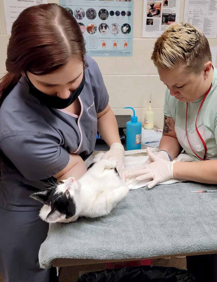 Another ripple effect of the shortage is a backlog of animals that could be adopted but can’t because they have not been spayed or neutered. Under state law, animals cannot be adopted without being spayed or neutered. With a shortage of vets, it’s getting more and more difficult to get these surgeries accomplished. Animals who would normally be receiving vaccines are also at risk of not receiving this protection from diseases like rabies and parvo that are easily spread and pose a public health risk.