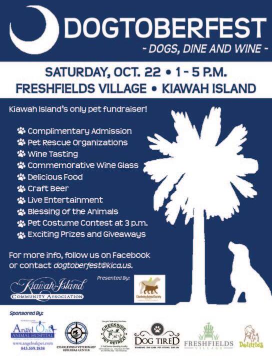 Kiawah Island Community Association and Freshfields Village are teaming up to help Lowcountry animal rescue organizations with the annual Dogtoberfest Wine Tasting and Pet Expo. Dogtoberfest is sponsored by Charleston Animal Society. Halloween costumes for dogs are encouraged!