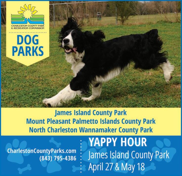 Come join Charleston Animal Society and reward yourself and your pooch after a long day at the office! Bring your favorite furry friend to enjoy live music and beverages at Yappy Hour at the James Island County Dog Park. The Yappy Hour series promises great music and fun! $2.00 per person park admission (or free for Gold Pass Members). Beverages available for purchase.