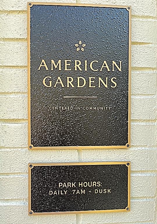 Early Wednesday morning, just four days after the grand opening of American Gardens adjacent to the Gibbes Museum of Art and Charleston Library Society, several pairs of people, some with dogs, strolled along the narrow park.