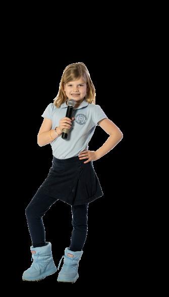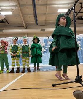 4. Kindergarteners practice their public speaking skills at the holiday performance in December.