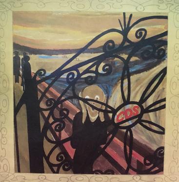 In the fall of 2010, the 4’ x 4’ Yellow Sub masonite panel was put on display on the Archdale St. fence, along with a number of other art class masonite panels. Sometime during the weekend of September 24, the Yellow Submarine panel disappeared. Mr. Welborn submitted a plea in the form of an editorial to the Post and Courier for its return. CDS received no response until Steffi’s brother, Joey, spotted the piece on College of Charleston’s campus and returned it to the Cerato family. Another panel, The Scream or Nightmare on Archdale Street, suffered a similar fate and has never been returned.