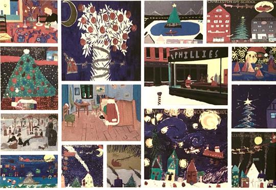 Many students and families from the late 1990s and early 2000s may remember the painted masonite panels that would hang facing Archdale Street during the December holidays. The theme of the 20+ panels soon expanded to include other holidays celebrated via altered famous paintings like Monet’s Les Dindons/The Turkeys (Thanksgiving), and Munch’s The Scream (Halloween). Later on, Mr. Welborn and his students began to include some current events like the loss of the Space Shuttle Columbia and its six astronauts. Of course there were also some other fun, but none-the-less well-rendered, topics like the Yellow Submarine