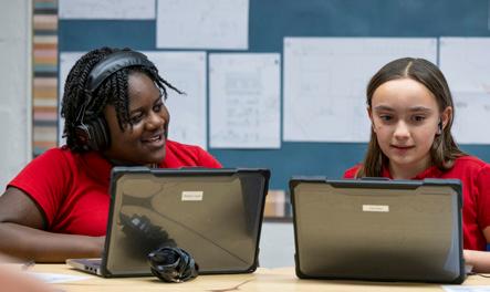 7. 6th graders, Taylor and Miller, collaborate in world language class.