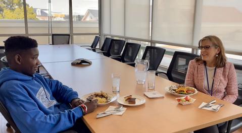 joins Ms. Beachley, Interim Head of School, for a one-on-one lunch in the conference room to chat about plans after CDS.