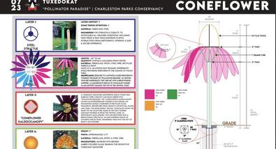 A second piece of art for Charleston trails will be created and installed on the bikeway at Magnolia Road in the Maryville Neighborhood. TuxedoKat, an award-winning artist from the Artfields juried program, will create and install a 12' Coneflower using all recycled materials.